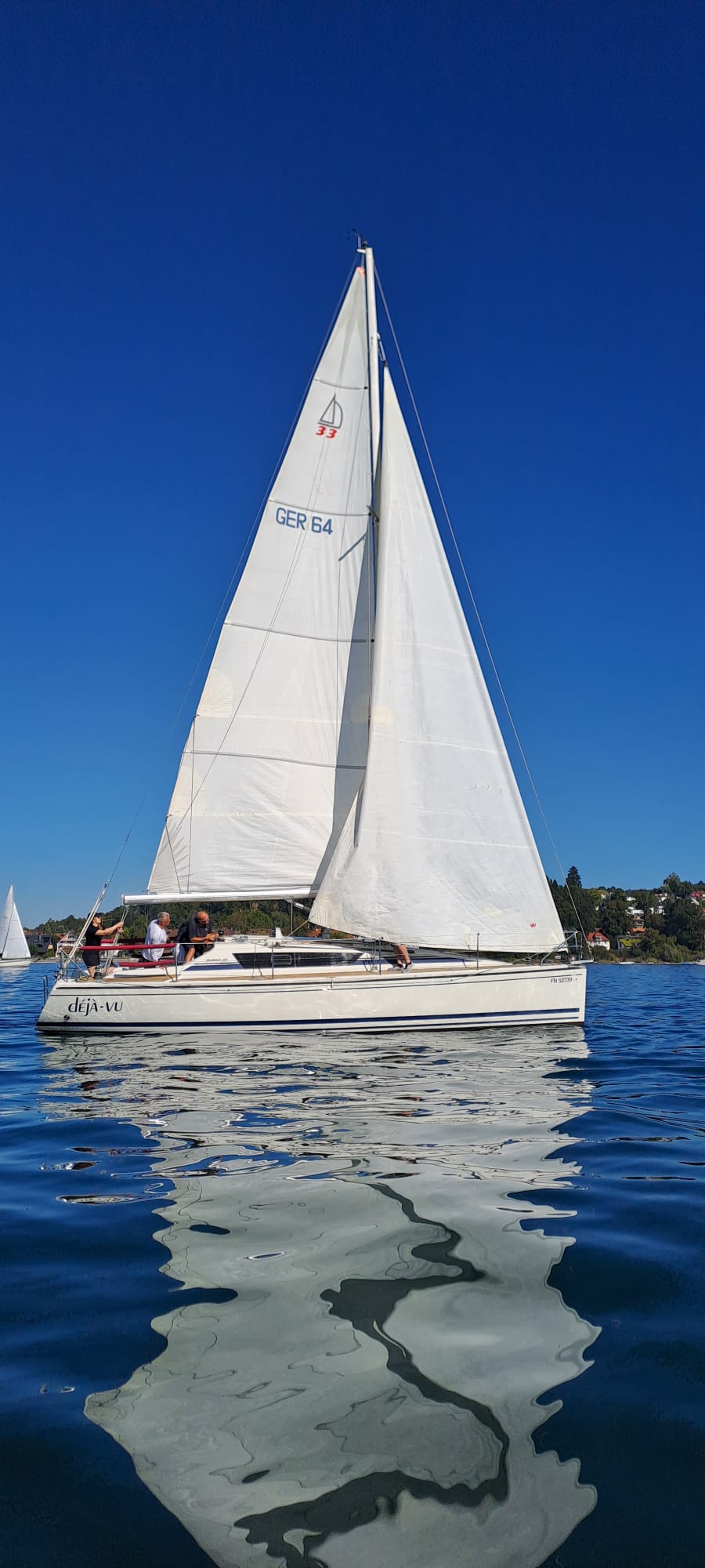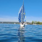 Schon bei der Steuermannsbesprechung um 13 Uhr war klar – das wird eine Regatta mit viel Wind. Vor dem Auslaufen wurden schon die Vorsegel verkleinert, statt Genua wurde bei vielen Booten gleich die Fock angeschlagen. Auch im Großsegel sah man vor dem Start das eine oder andere Reff. Heute wird klassisch gestartet – d.h. kein Kängeruhstart – sondern nach den Startsignalen von unserem Regattaleiter Holger Stengele gehen wir alle gemeinsam auf den Regattastrecke. Der up and down Kurs liegt parat. Südwest-Wind mit vielen Windrehern erforderte etliche Wendemanöver auf der Kreuz von der Startboje Pfahlbauten bis zur Luvtonne bei Litzelstetten/Fließhorn. Dann mit Spinnaker oder Butterfly zur nächsten Wendeboje. „Wer refft verliert“ – nein das stimmt nicht – heute war wirklich gefragt, das richtige Segelkleid einzusetzen, da der Wind in Stärke und Richtung sehr launisch war. Unsere Jugendcrew wollte mit dem Laser auf die Strecke gehen, doch es war zuviel Wind. Eine gute und richtige Entscheidung war abzubrechen.